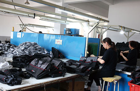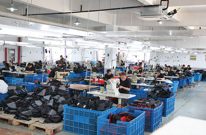 โรงงานของเราอยู่สูงประมาณ 8,000 ม2เรามีพนักงานทั้งหมด 150 คน รวมถึงนักออกแบบ 3 คน ผู้ตรวจสอบ 20 คน จักรเย็บผ้าแบบต่างๆ ประมาณ 100 ชุด เครื่องตัดและกระดาษเปล่า 5 ชุด ตลอดจนอุปกรณ์ทดสอบต่างๆ เพื่อให้แน่ใจว่าผลิตภัณฑ์ทั้งหมดที่ส่งถึงลูกค้าตรงตามความต้องการของพวกเขา .